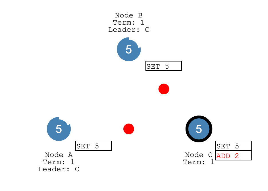 Unlike heartbeats, log entry syncing is (mainly) triggered by events. Whenever a new log entry is added by a client, the leader needs to replicate it to followers. When things run smoothly, a majority of the followers accept the new log entry. We can then call that entry "committed". However, because of server crashes and network failures, sometimes followers disagree with the leader. The leader needs to go back in the entry log, find the latest entry that they still agree on ("common ground"), and overwrite all entries after that.